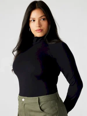 Expertly crafted, the NELLE bodysuit offers a sleek and versatile addition to your wardrobe. Made with stretch knit fabric, the mock neck bodysuit provides a comfortable fit while the snap closure ensures a secure hold. Perfect for any occasion, dress it up or down for a chic and effortless look.