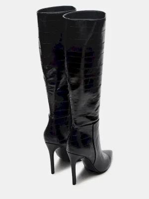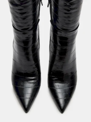 The NITRO BLACK EEL is a sophisticated and versatile addition to any wardrobe. This pointed-toe heeled stiletto boot is designed for both style and comfort, ensuring a confident stride. With a knee-high height, it adds a touch of elegance to any outfit.