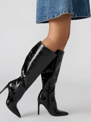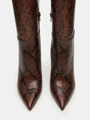 The NITRO BROWN SNAKE is a sophisticated and versatile addition to any wardrobe. This pointed-toe heeled stiletto boot is designed for both style and comfort, ensuring a confident stride. With a knee-high height, it adds a touch of elegance to any outfit.