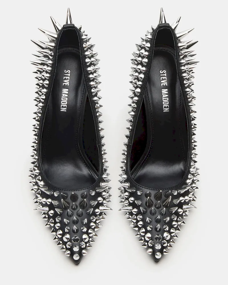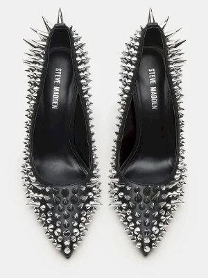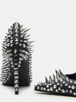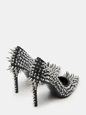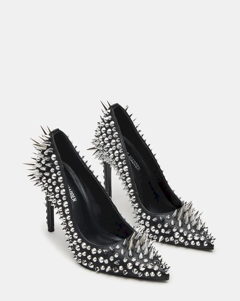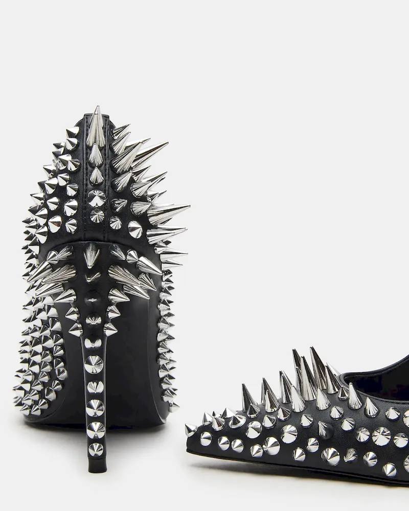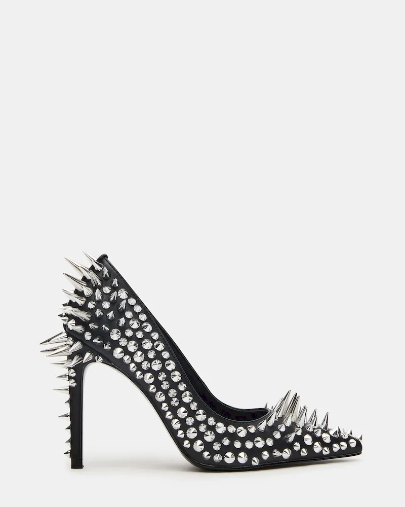 Crafted from luxurious materials, these NOIR BLACK STUD pumps add a touch of sophistication to any outfit with their sharp pointed-toe design and stiletto heel. Perfect for any occasion, these pumps offer a timeless and elegant look that will elevate your style.