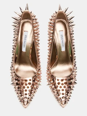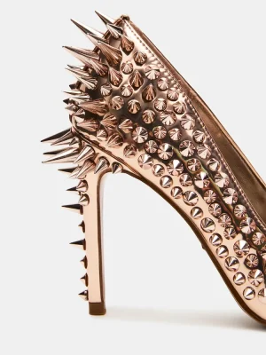 Crafted from luxurious materials, these NOIR ROSE GOLD STUD pumps add a touch of sophistication to any outfit with their sharp pointed-toe design and stiletto heel. Perfect for any occasion, these pumps offer a timeless and elegant look that will elevate your style.