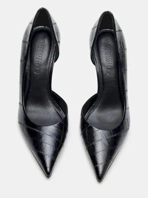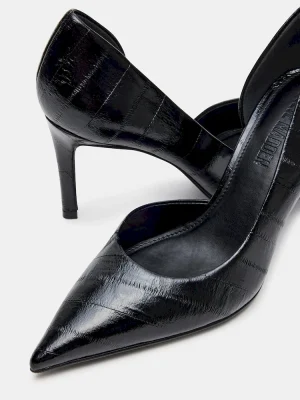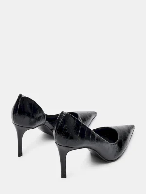 The NULA BLACK EEL features a sleek pointed-toe design paired with a slender stiletto heel, offering an elegant silhouette that enhances posture and elongates the leg line. Crafted for both style and sophistication, this pump combines bold zebra patterning with refined construction, making it an ideal choice for elevated, confident looks in professional or evening settings.