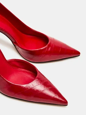 The NULA RED EEL features a sleek pointed-toe design paired with a slender stiletto heel, offering an elegant silhouette that enhances posture and elongates the leg line. Crafted for both style and sophistication, this pump combines bold zebra patterning with refined construction, making it an ideal choice for elevated, confident looks in professional or evening settings.