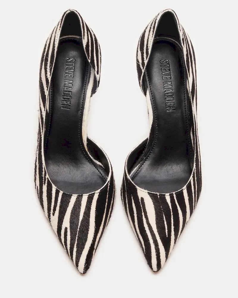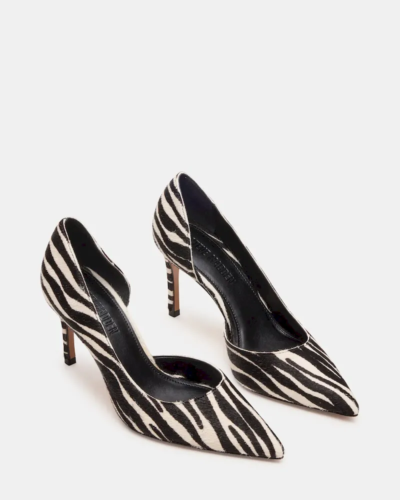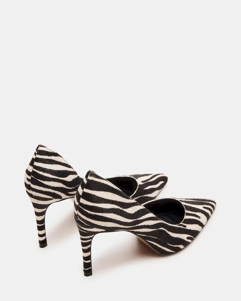 The NULA ZEBRA features a sleek pointed-toe design paired with a slender stiletto heel, offering an elegant silhouette that enhances posture and elongates the leg line. Crafted for both style and sophistication, this pump combines bold zebra patterning with refined construction, making it an ideal choice for elevated, confident looks in professional or evening settings.