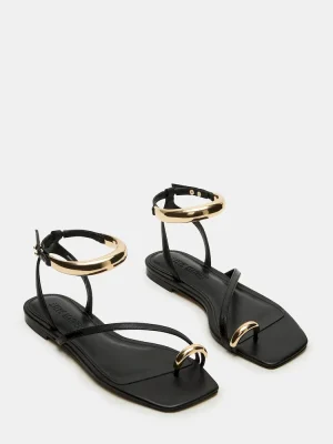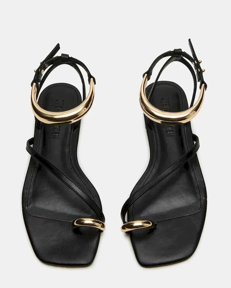 The ODYSSEY sandal offers both style and comfort with its strappy design, square-toe shape, and gold hardware ankle strap. A sleek toe ring adds a touch of sophistication. Perfect for a day out or a night on the town.