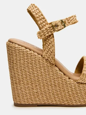 Elevate your summer wardrobe with the PALM NATURAL RAFFIA platform wedge sandal. Crafted with raffia materials, this sandal offers a breathable, lightweight design perfect for warm weather. The platform wedge provides stable height and support, ensuring comfort throughout your day. Its versatile neutral tone pairs effortlessly with both casual and upscale looks, making it an expert choice for style and functionality.