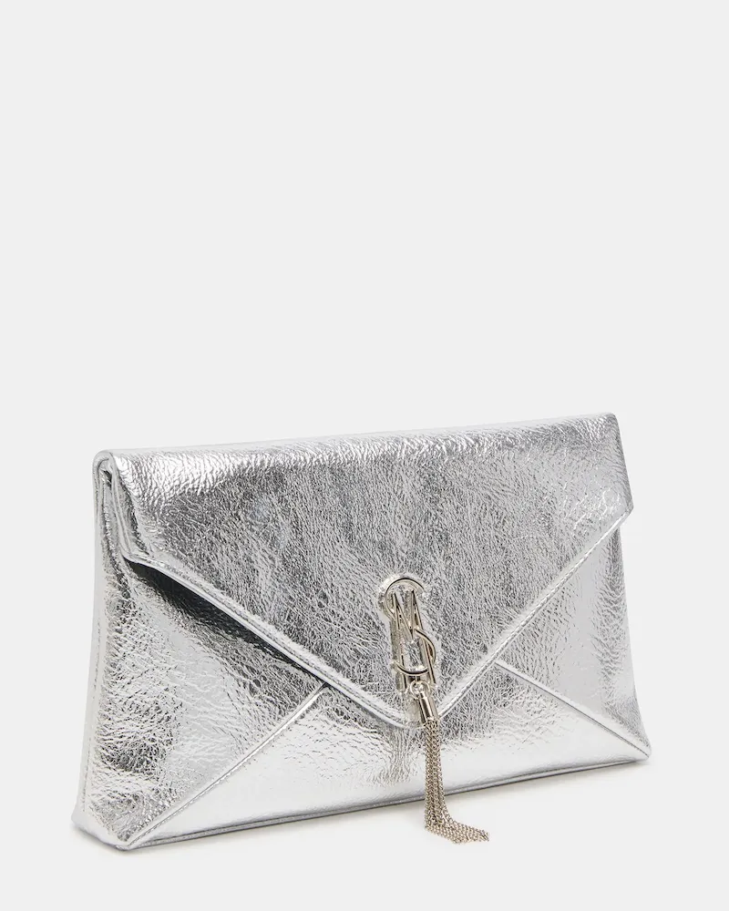 This stylish clutch handbag, the PARTAY bag, features a soft mag snap closure, back zipper wall, and slip pocket. Its tassel logo adds a touch of elegance while its crinkle look gives it a unique texture. Perfect for any occasion, this bag also comfortably fits large phones.