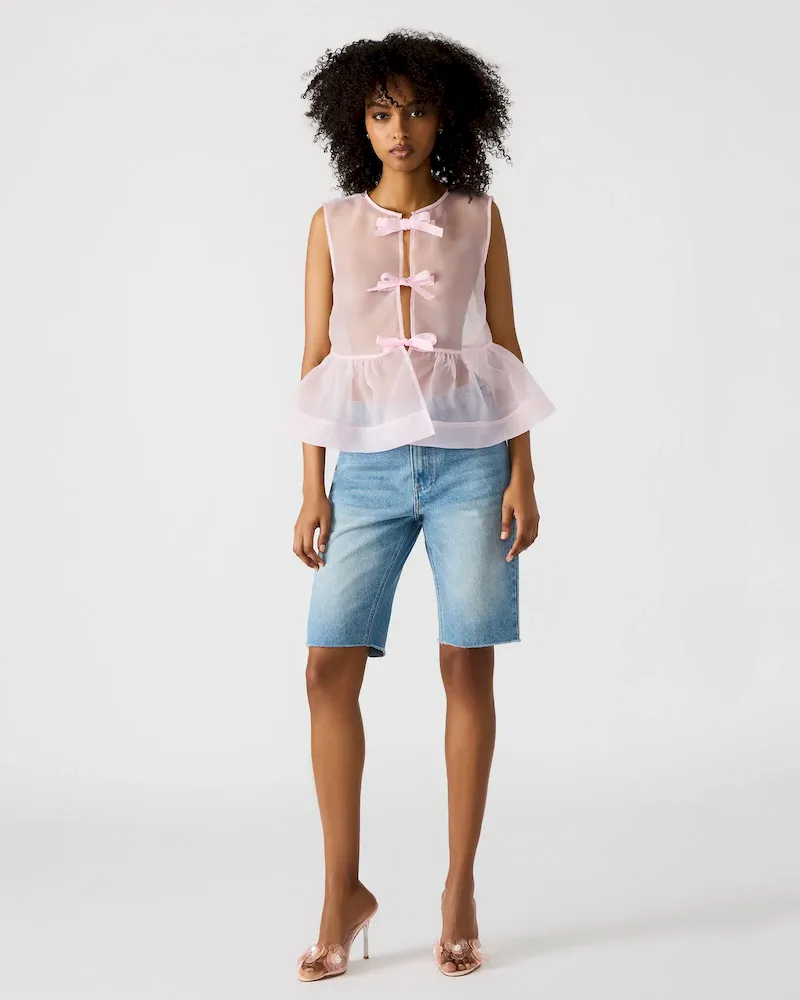 Elevate your style with the PAULINA top. This sophisticated piece features a sheer mesh construction with an elegant bow tie-front detail, creating a perfect balance of femininity and contemporary design. The lightweight fabric offers breathable comfort while the distinctive silhouette ensures a flattering fit for various occasions.