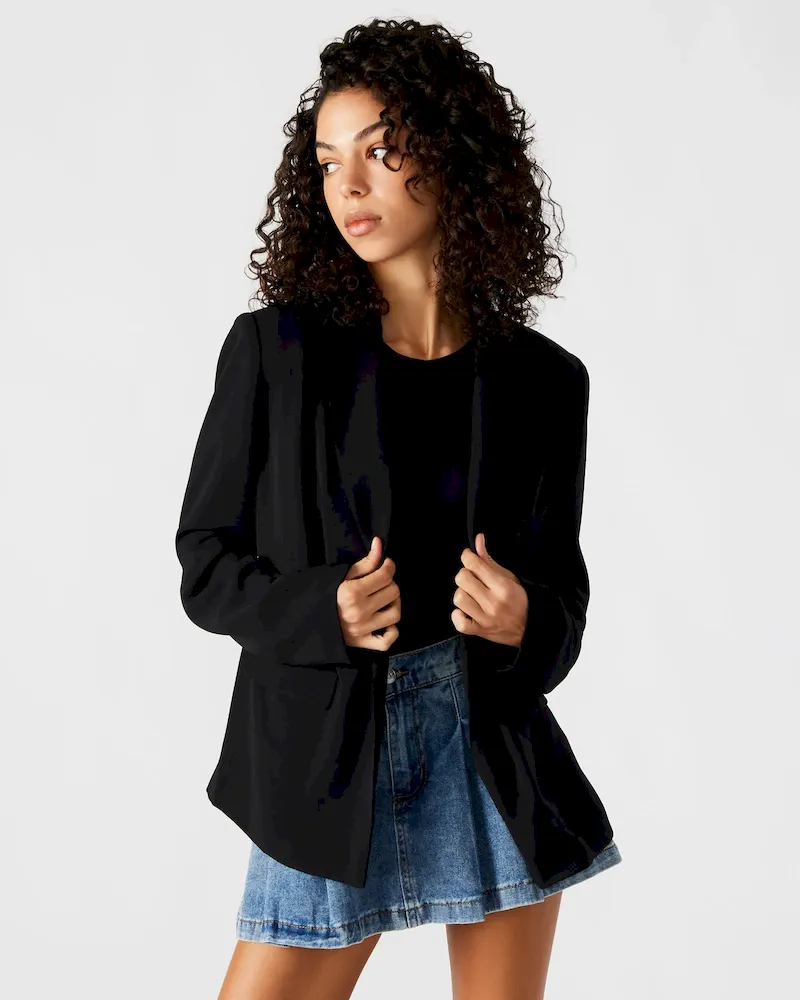 Throw on the PAYTON blazer over your OOTD for a touch of tailored style. The no-button cuffs and open front give this jacket clean, unbroken lines.