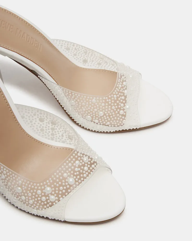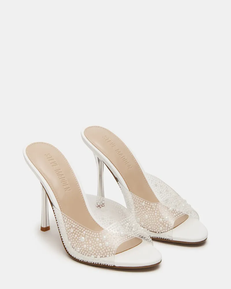 PEACH offers a stylish combination of stiletto heels and mule design. Elevate your outfit with these comfortable and versatile shoes, perfect for a night out or bridal event. The sleek silhouette and easy slip-on design make these a must-have addition to your shoe collection.