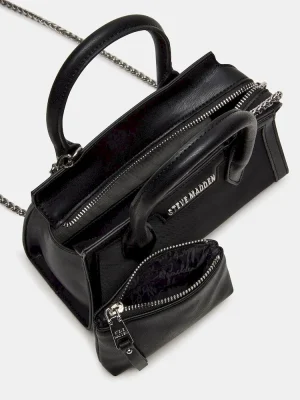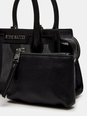 The PEACHY bag is a mini top-handle bag that combines style and functionality. Its unique design adds a touch of elegance, while the detachable chain crossbody strap offers versatile carrying options. The top zipper closure keeps your essentials secure, and the all-over mesh design adds a unique touch. Elevate your outfit with this must-have accessory.