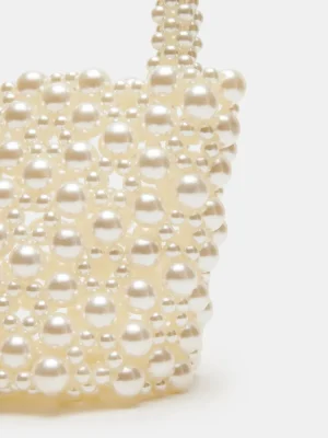 - Faux pearl bucket bag