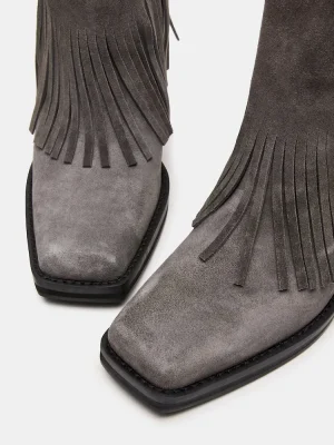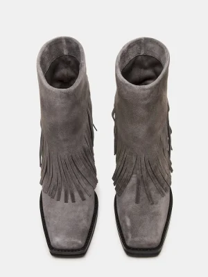 The PIA bootie features a chunky square-toe and block heel peeking out from a fold over design with a curved topline.