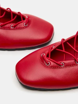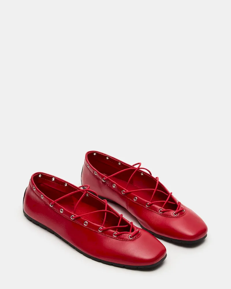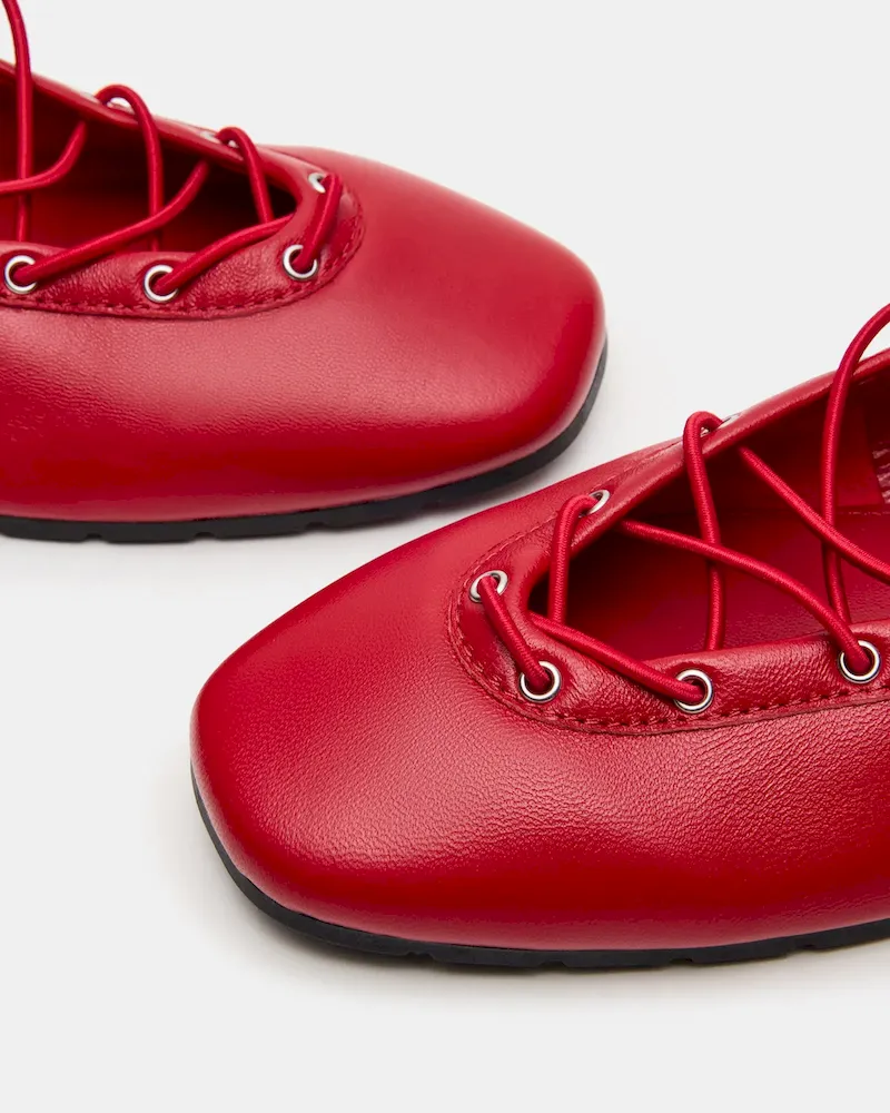 The POINTE ballet flat offers secure ankle ties for a comfortable and secure fit. Its square- toe design allows for more room and flexibility, perfect for all occasions and those looking for comfortable yet stylish footwear.