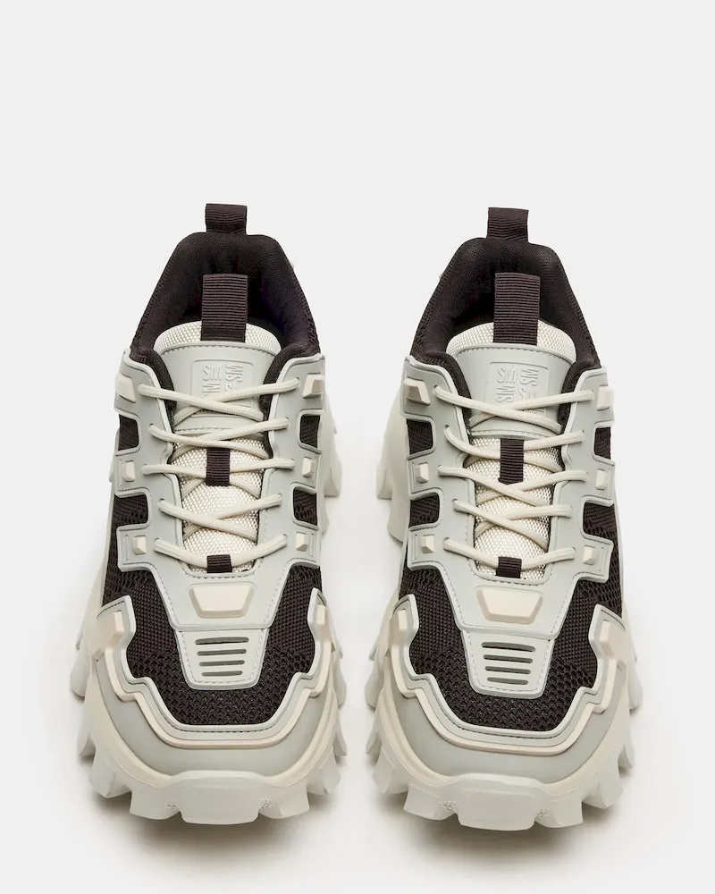 The PONCE sneaker matches the exaggerated molded sole with a detailed upper reinforced with angular textured accents.
