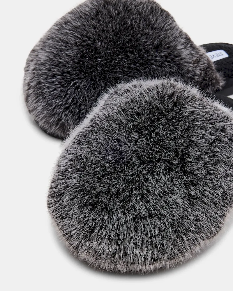 Experience comfy luxury with the POOF faux fur slip-on mule. Designed for effortless wear, these slippers combine plush faux fur with a convenient mule silhouette, offering warmth and comfort without compromising style. Perfect for relaxing at home, they provide a soft, cushioned feel that keeps your feet snug throughout the day.
