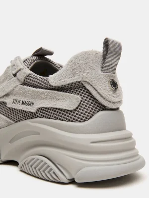 SUBSTANTIAL + DYNAMIC + MODERNThe sweeping lines of the chunky molded sole on the POSSESS sneaker are matched by the curved panels that reinforce the mesh upper.