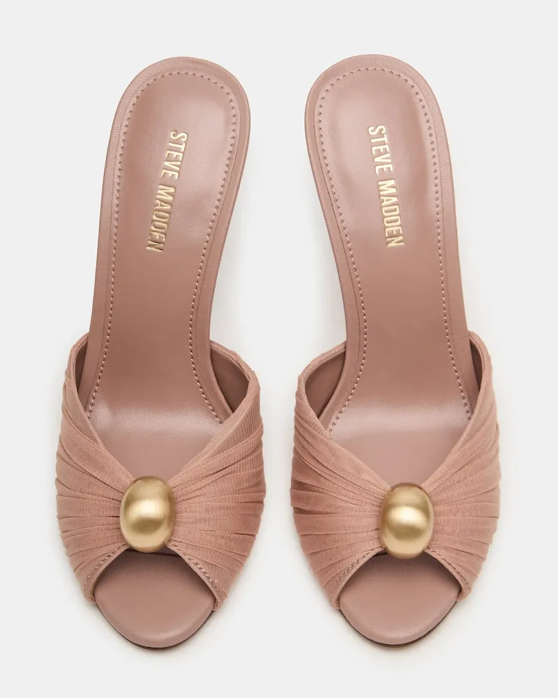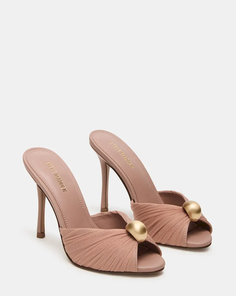 DREAMY + DELICATE + CHARMINGThe PRIYA sandal pairs a slender stiletto heel with a retro-inspired peep toe design on the slide strap at the front.