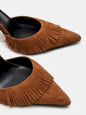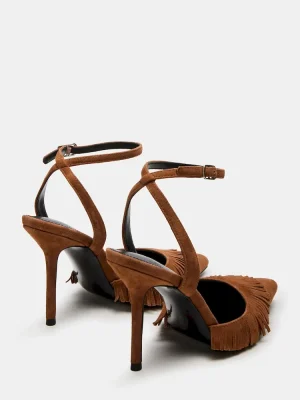 Expertly crafted and designed for sophistication, the QUALLEY features a pointed-toe heel with a crisscross back and ankle strap for added support. Its pump design and fringe detailing add a touch of luxury to any look. Elevate your wardrobe with these must-have heels.