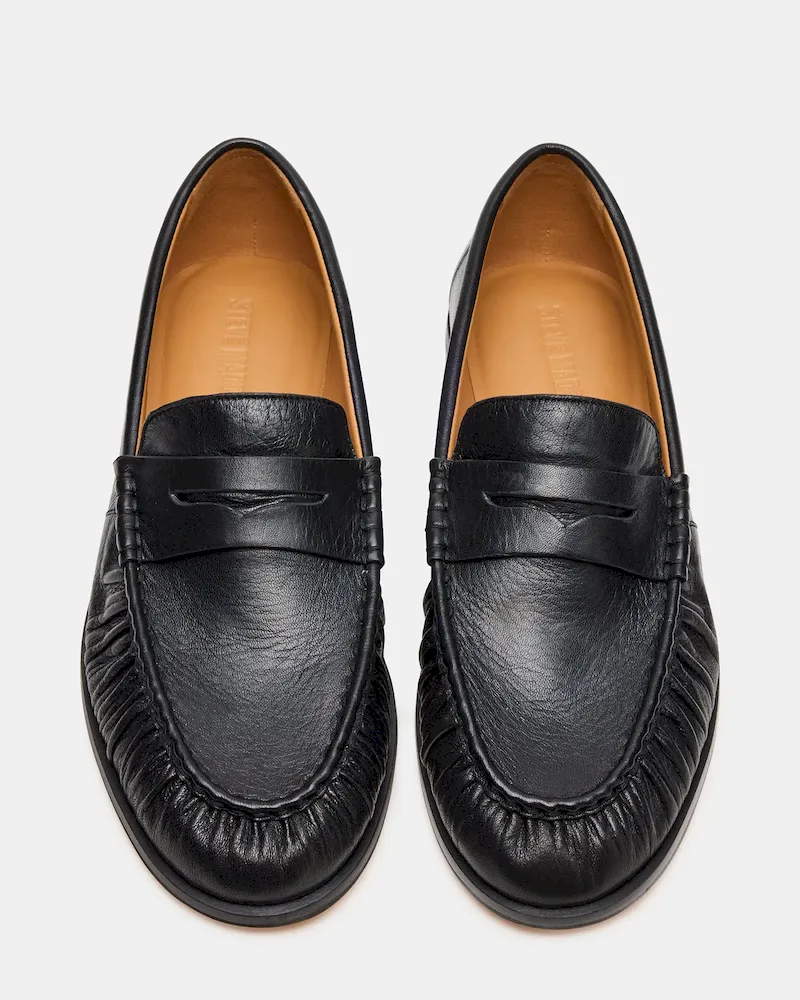 The QUINCEY BLACK LEATHER slip-on loafer combines timeless craftsmanship with modern comfort. Crafted from premium materials, it offers durability and a polished look ideal for both professional and casual settings. Its easy slip-on design ensures a secure fit without sacrificing convenience, while a cushioned insole provides all-day support. This loafer seamlessly blends style and practicality, making it a versatile addition to any wardrobe.