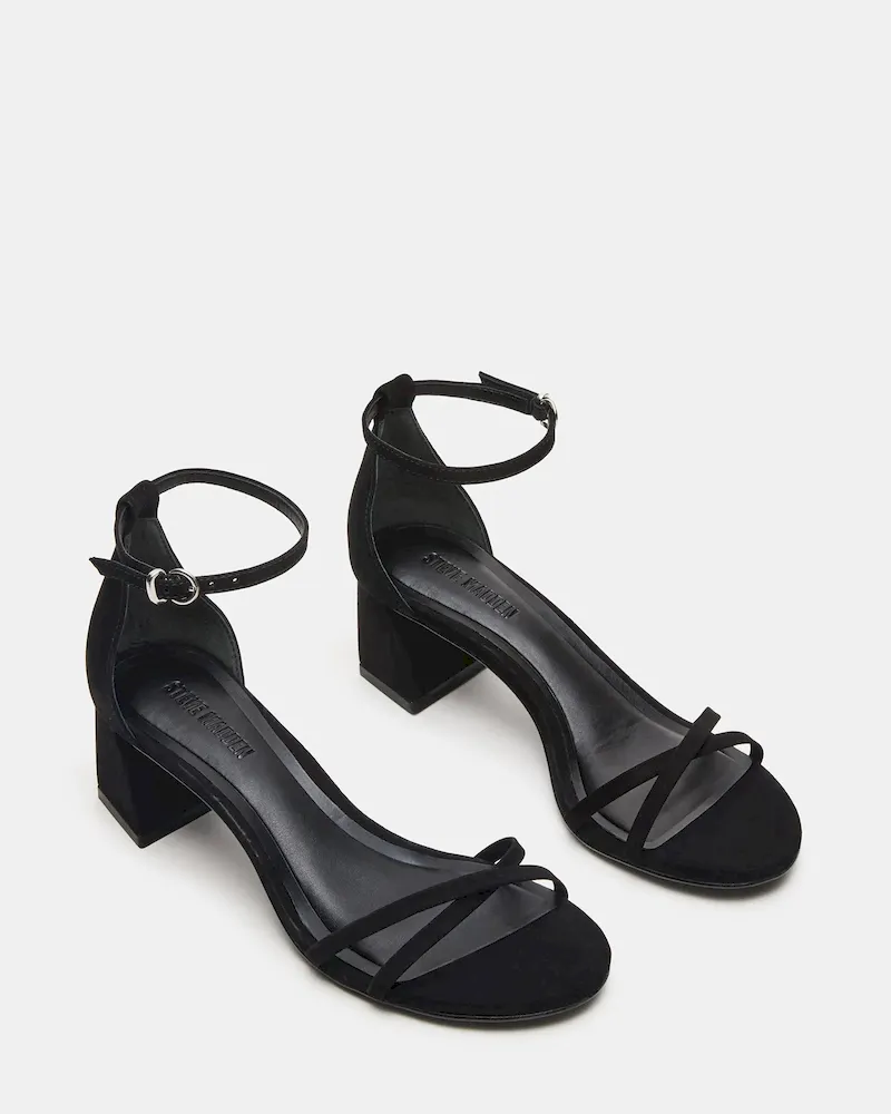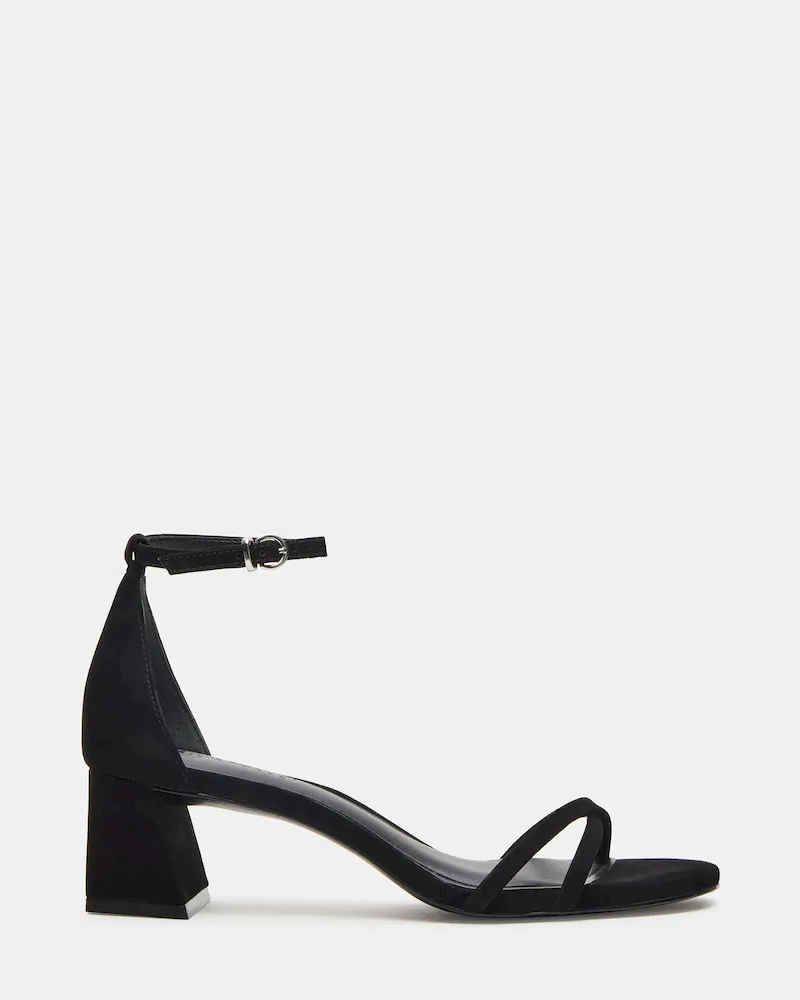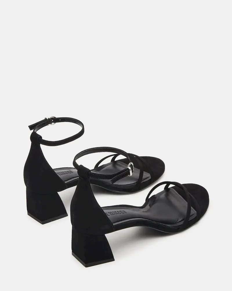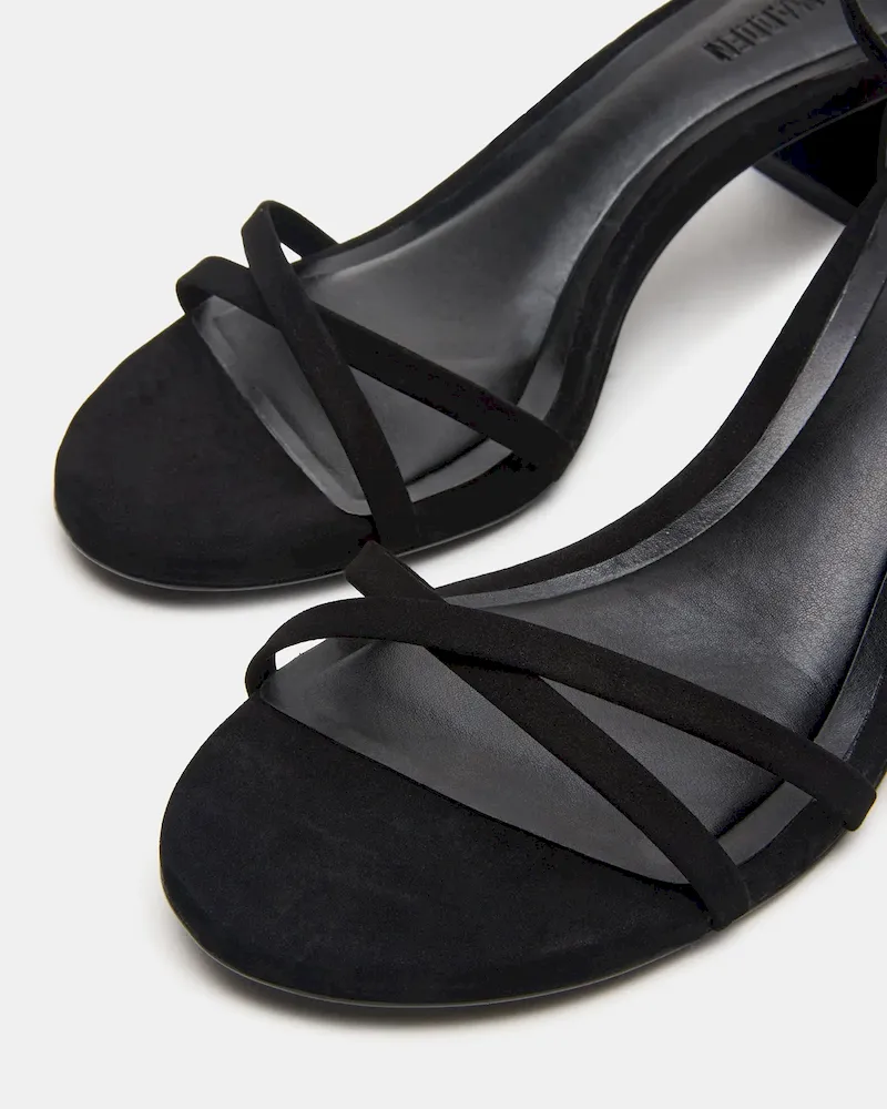 The RAE BLACK NUBUCK strappy block heel sandal combines modern style with reliable comfort. Crafted from quality materials, it features slender straps that provide secure support while highlighting the foot’s natural shape. The sturdy block heel ensures stability and ease of wear, making it ideal for both day and evening occasions where you want to look polished without sacrificing comfort. Perfectly balancing sophistication and practicality, this sandal is an expert choice for enhancing your footwear collection.