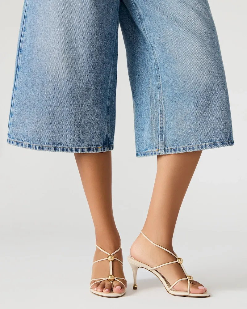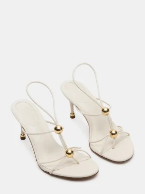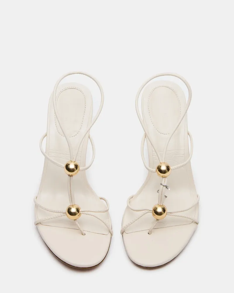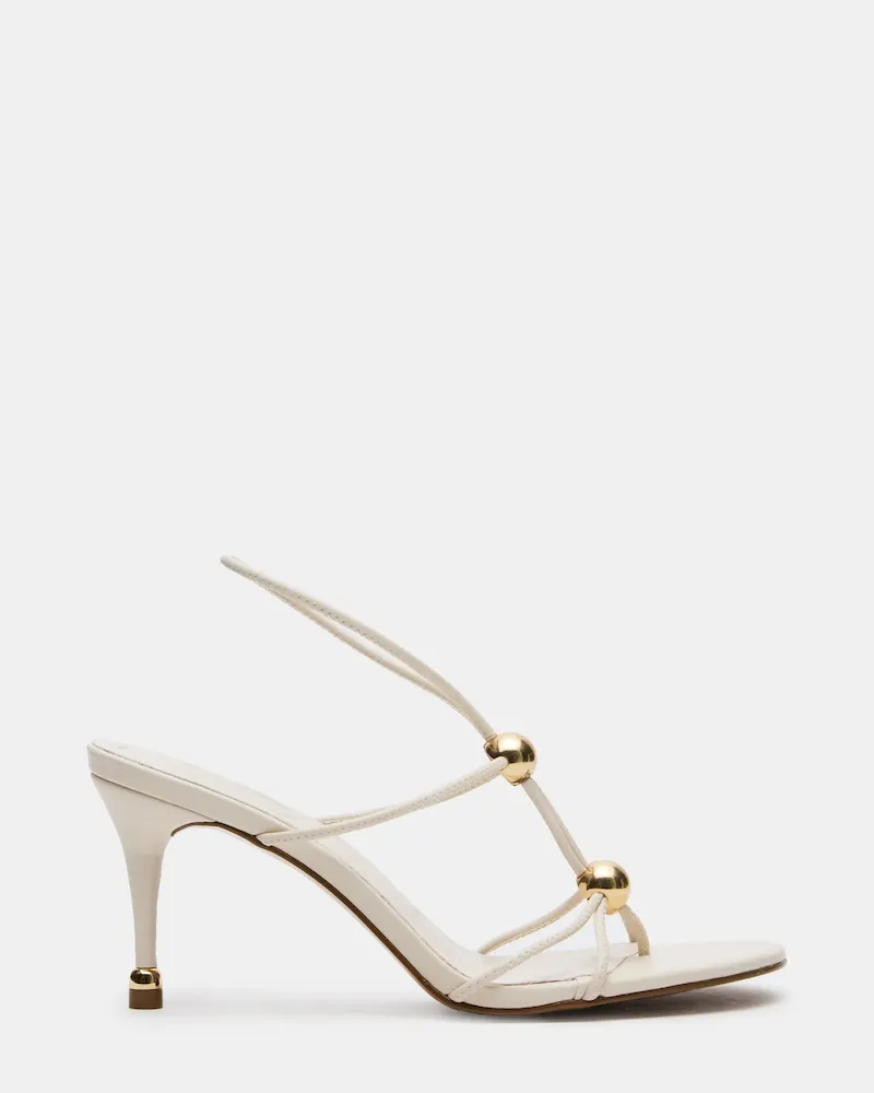 Introducing the RAMOS, the perfect combination of elegance and edge. Featuring a strappy stiletto heel adorned with gold hardware accents, these shoes will elevate any look. Step out in style and confidence with these stunning heels.