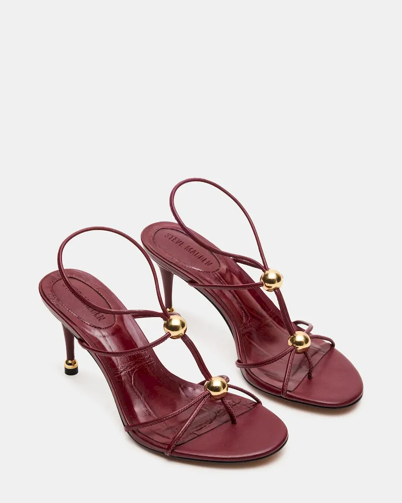 Introducing the RAMOS, the perfect combination of elegance and edge. Featuring a strappy stiletto heel adorned with gold hardware accents, these shoes will elevate any look. Step out in style and confidence with these stunning heels.