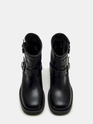 Elevate your style with the RAMPANT moto boot. Constructed with an ankle bootie design and sturdy lug sole, these boots are perfect for making a statement. The sleek leather adds a touch of sophistication to any outfit.