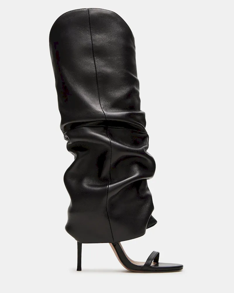 Expertly crafted and designed, the RAVINE cuffed knee-high boot features an open toe and stiletto heel for a stylish touch. The rounded toe provides comfort while the sleek design adds a touch of sophistication. Elevate your look with this must-have boot.