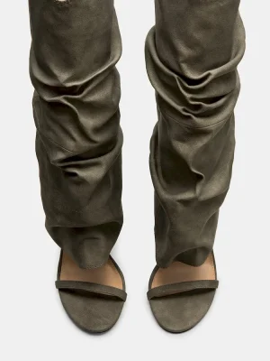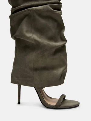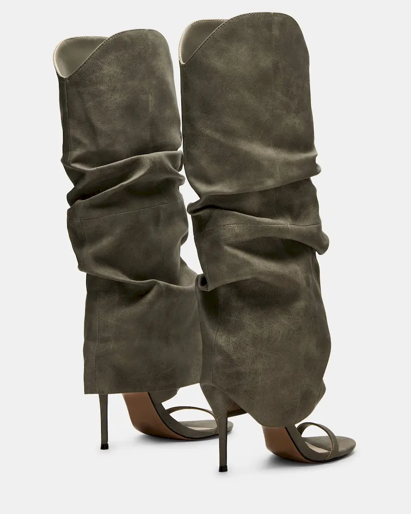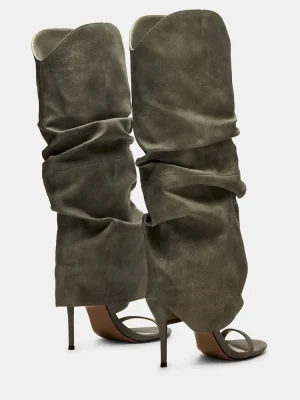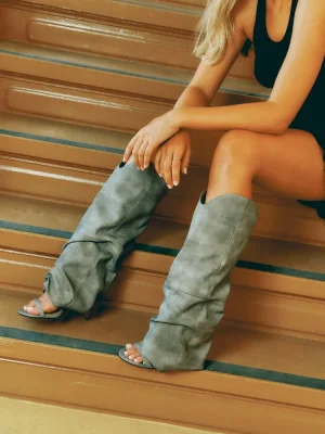Expertly crafted and designed, the RAVINE cuffed knee-high boot features an open toe and stiletto heel for a stylish touch. The rounded toe provides comfort while the sleek design adds a touch of sophistication. Elevate your look with this must-have boot.
