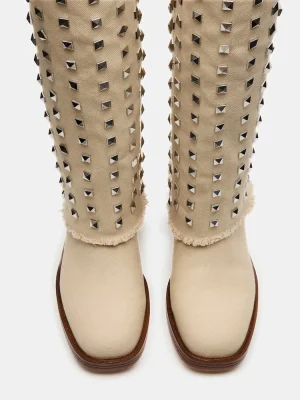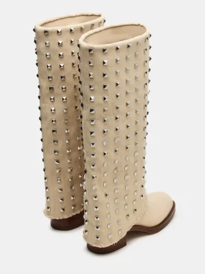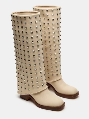 Elevate your style with RECON. These square-toe boots feature a studded cuffed fold-over design, adding an edgy touch to any outfit. Crafted with high-quality materials, these boots offer durability and comfort for all-day wear.