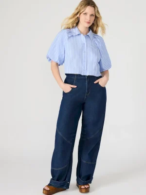 Introducing the REECE top – a sleek cotton poplin top with a tapered button up front and bubble sleeves. Its slightly cropped length and boxy fit make it a versatile piece for any occasion. Elevate your wardrobe with this fashion-forward must-have.