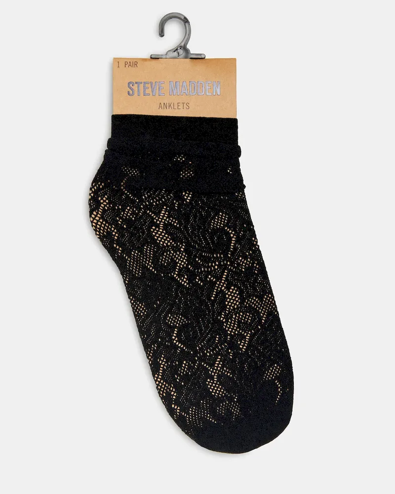 Upgrade your sock collection with our RICH SOCKS. These stylish black anklet socks feature an elegant allover lace design that adds a touch of sophistication to any outfit. Crafted with comfort in mind, these socks provide a snug fit and are perfect for everyday wear. Elevate your sock game today!