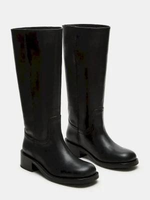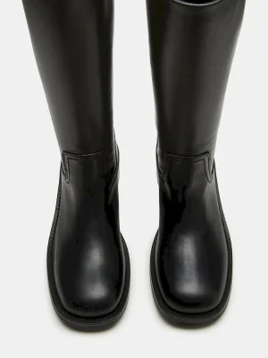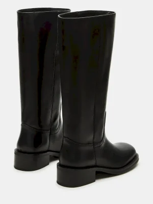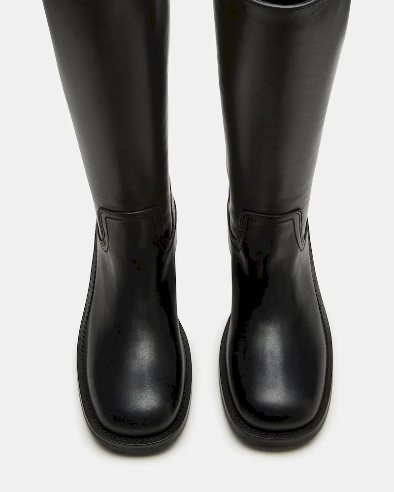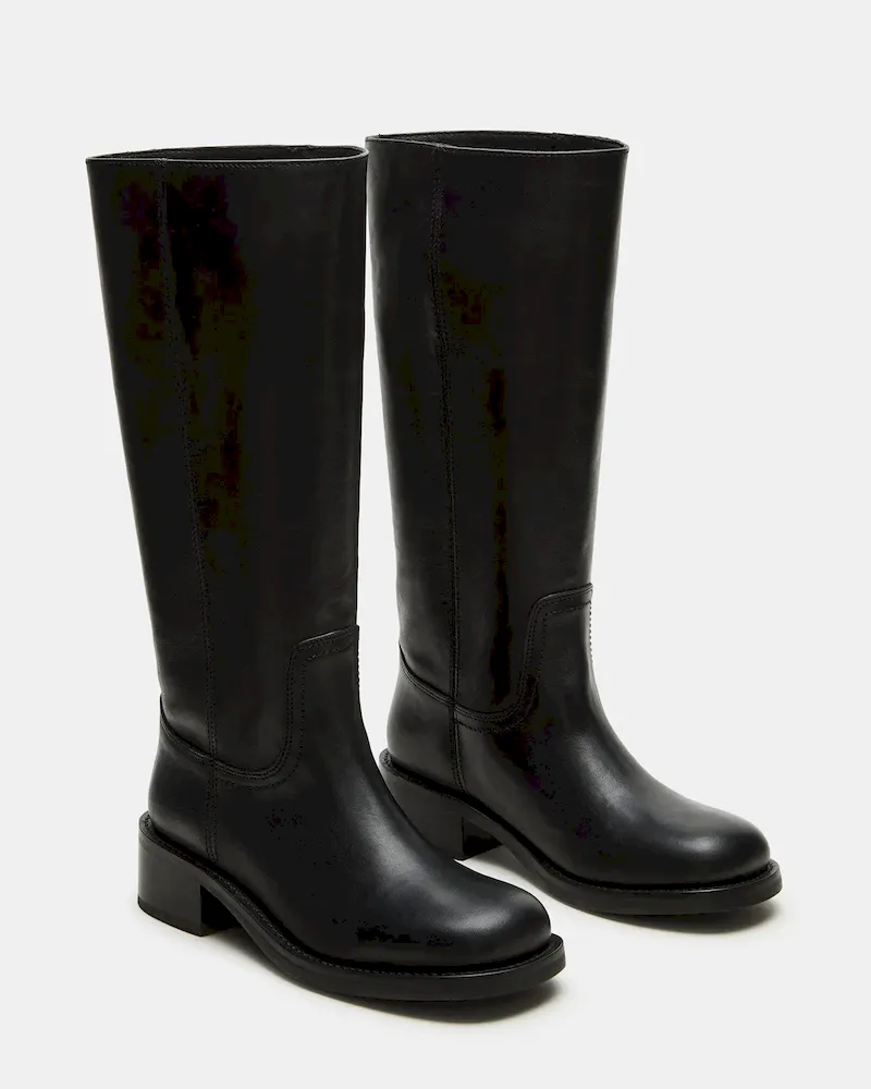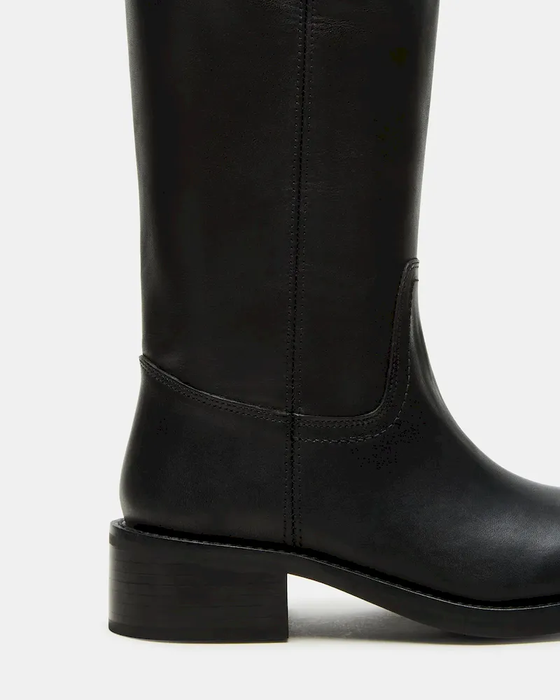 Effortlessly elevate your style with the RIGGS BLACK LEATHER WIDE CALF boot. With its square-toe and sleek design, this just-under-the-knee boot is a must-have for any fashion-conscious individual. This timeless boot provides both comfort and sophistication, making it the perfect addition to any outfit.