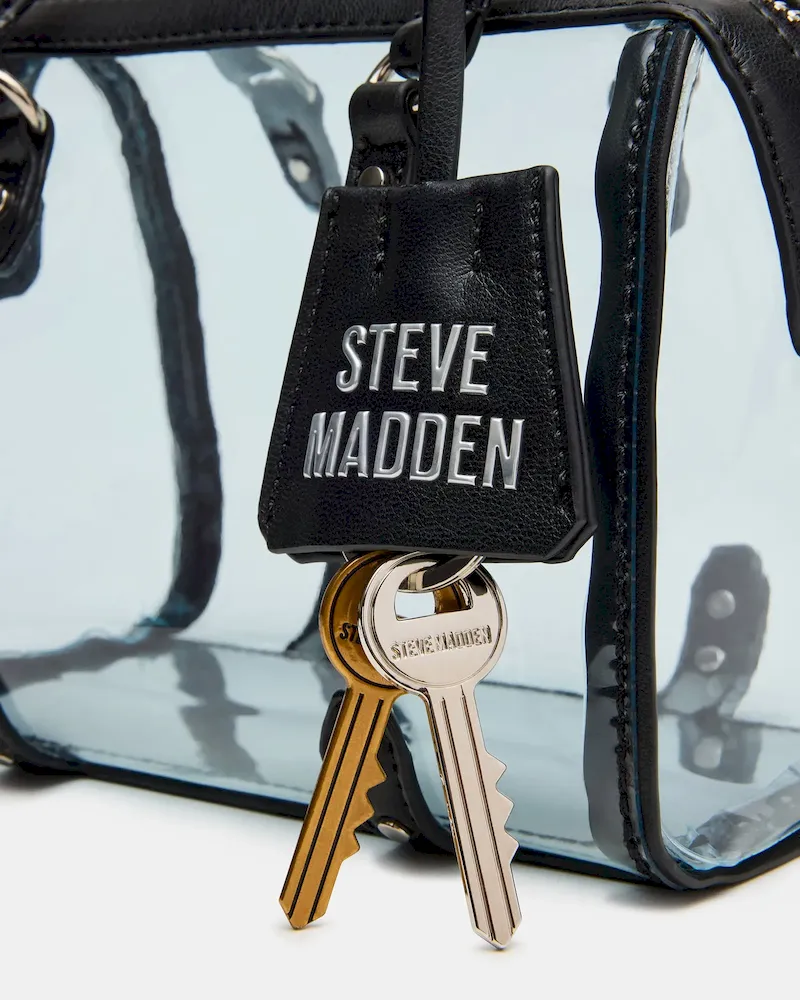 The RIVAL bag is a sleek mini clear crossbody designed to meet stadium requirements, ensuring hassle-free entry. Featuring convenient top-handles, it offers versatile carrying options for both hands-free and handheld use. Its compact size keeps essentials organized while maintaining a modern, minimalist look perfect for events and everyday outings.