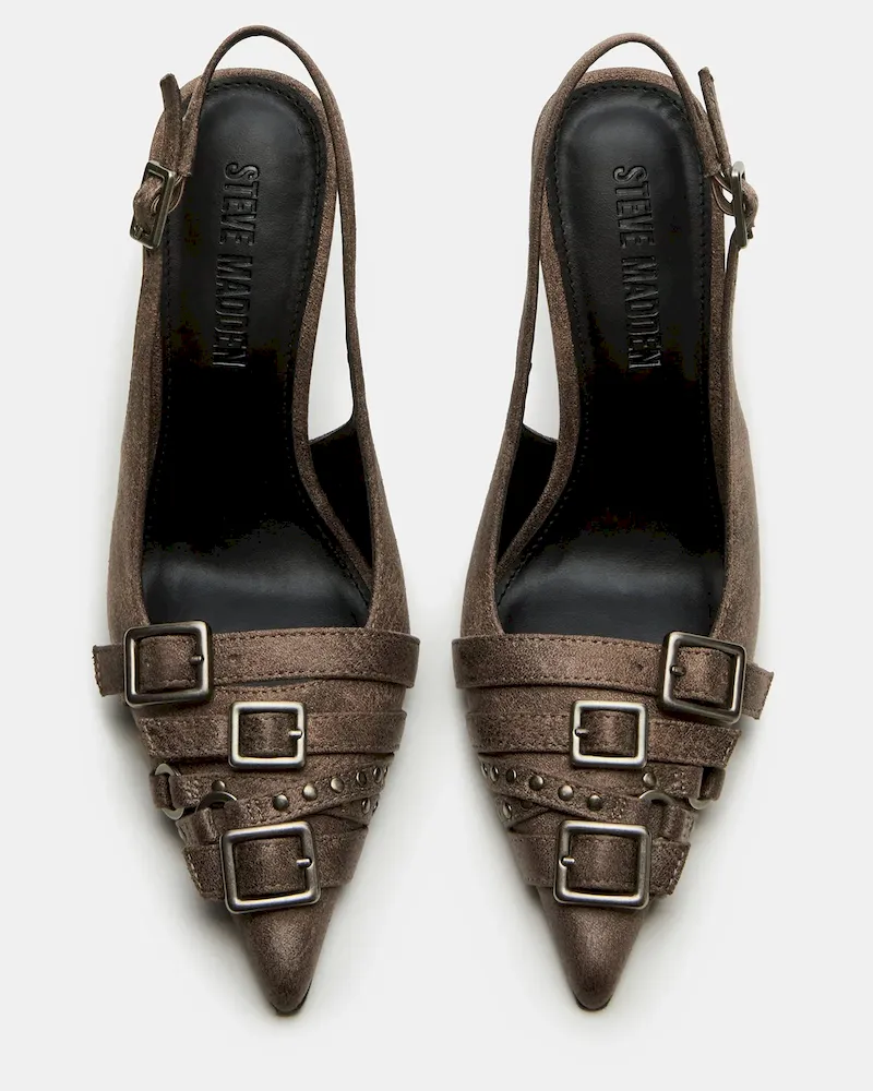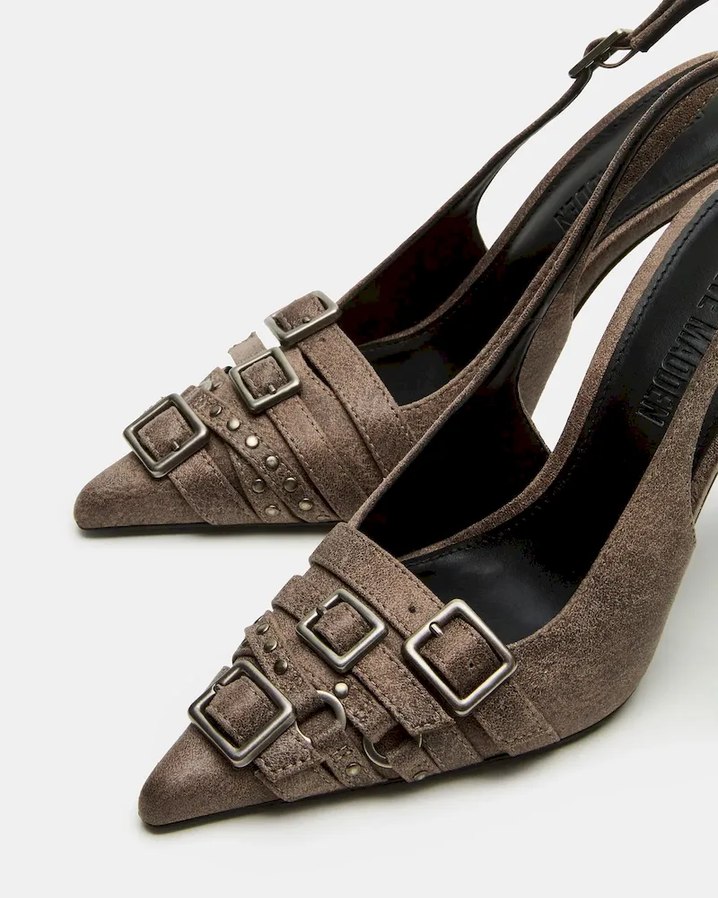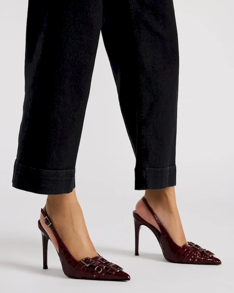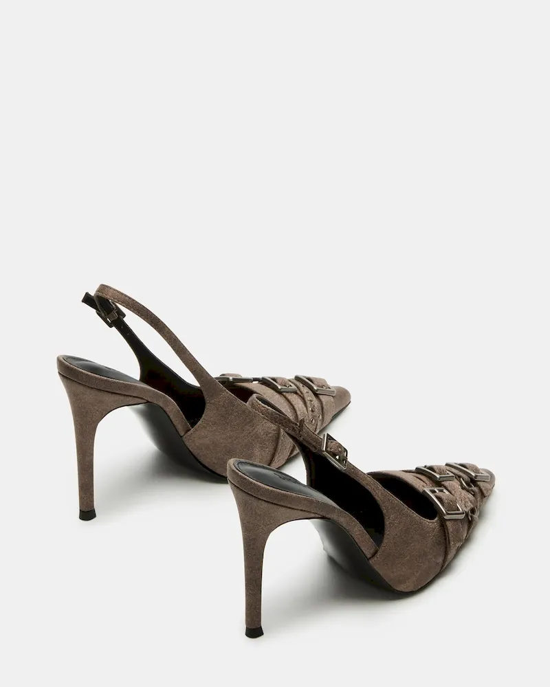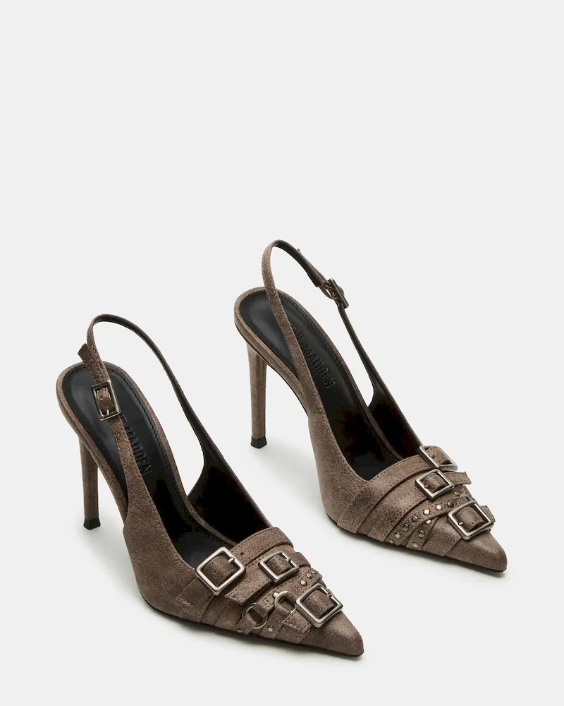 Experience luxury and style with our RIVVY pointed-toe pump heel. The sleek design and slingback feature ensures a secure, comfortable fit. Elevate any outfit with confidence.