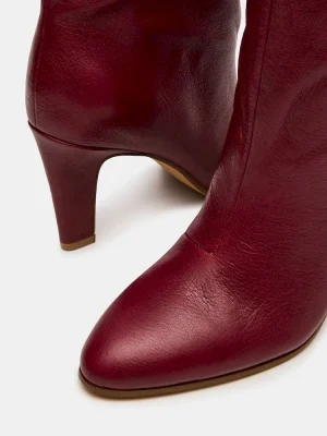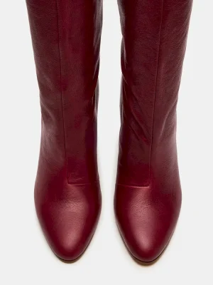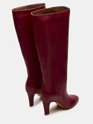 Elevate your style with the RIZK BURGUNDY LEATHER knee-high heeled boots. Crafted from premium materials, these boots combine sleek sophistication with a flattering silhouette. The structured heel offers confident height while maintaining stability, making them ideal for both daywear and evening occasions. Designed to contour the leg for a streamlined fit, these boots effortlessly enhance any outfit with timeless elegance.