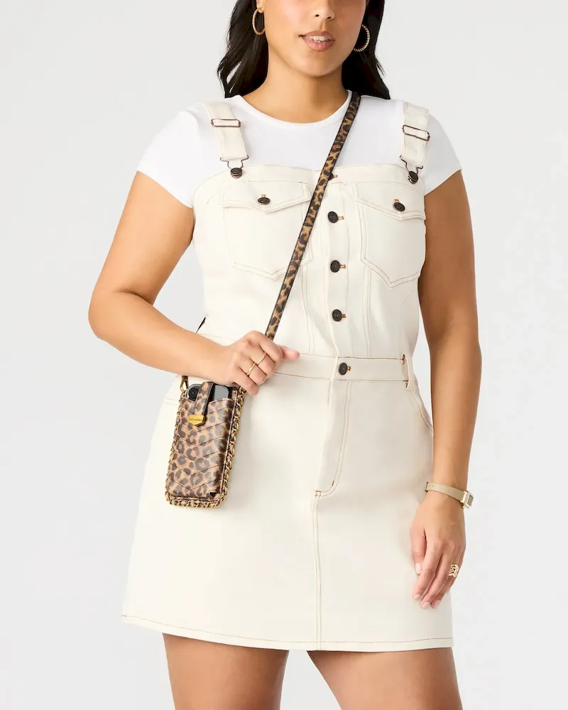 The ROAM bag is the perfect accessory for any traveler. This phone bag has a front slip pocket, chevron quilting, and 3 card slots, so you can easily access your essentials on the go. The clear PVC window for ID provides convenience and the removable crossbody strap allows for customizable wear. Its sleek design and chain trim add a touch of style to this functional bag.