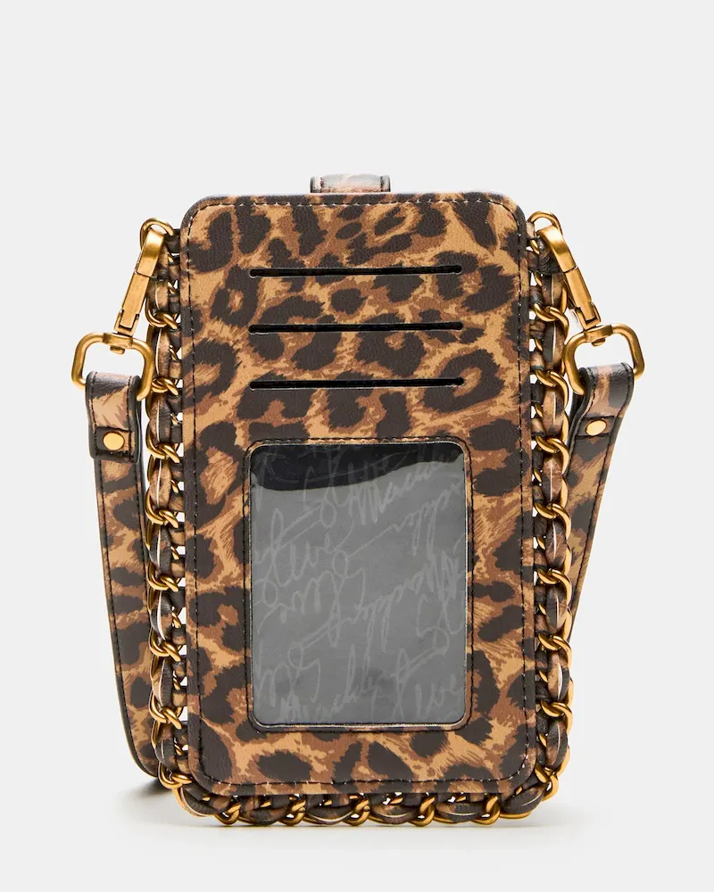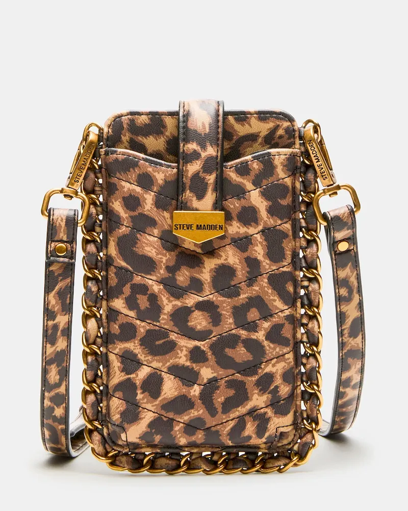 - Crossbody phone bag with chain trim