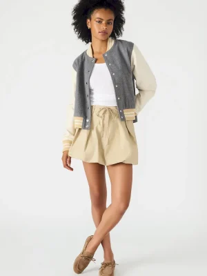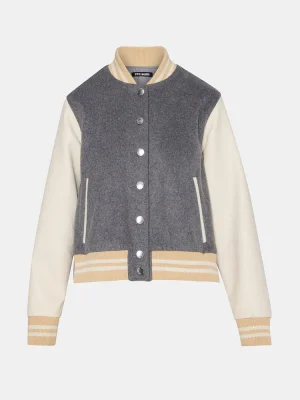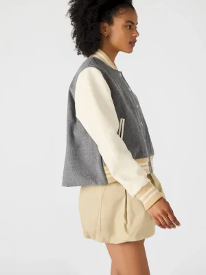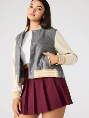 - Long-sleeved varsity jacket