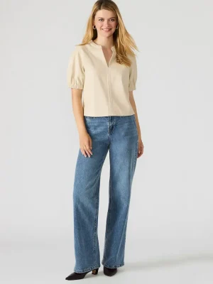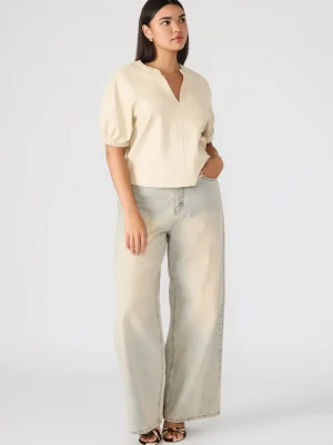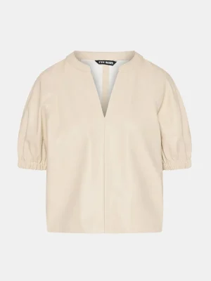 Elevate your wardrobe with the ROXANNE top, featuring short puff sleeves crafted from luxurious faux leather. This expertly designed piece combines edgy texture with a flattering silhouette, perfect for making a sophisticated statement in any setting.