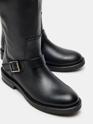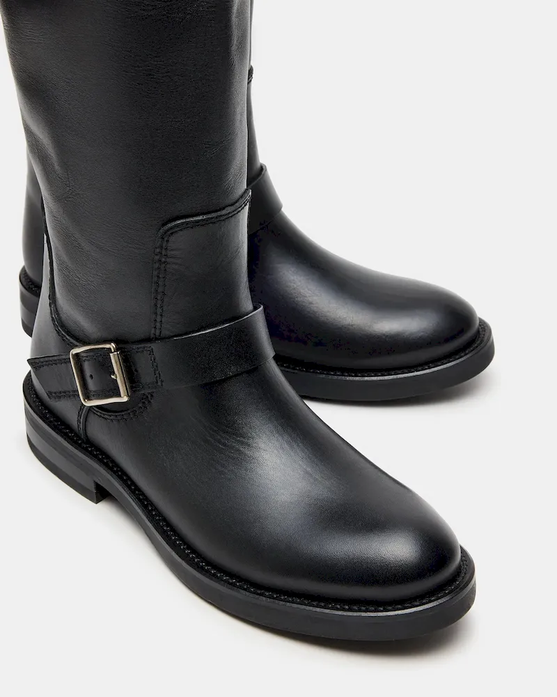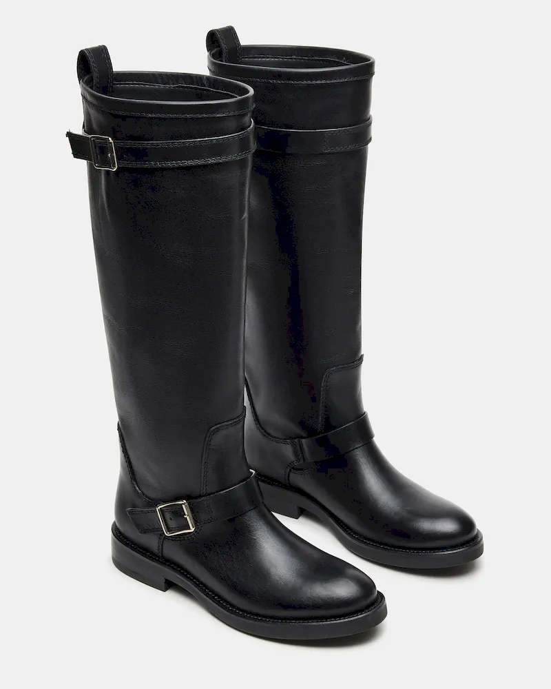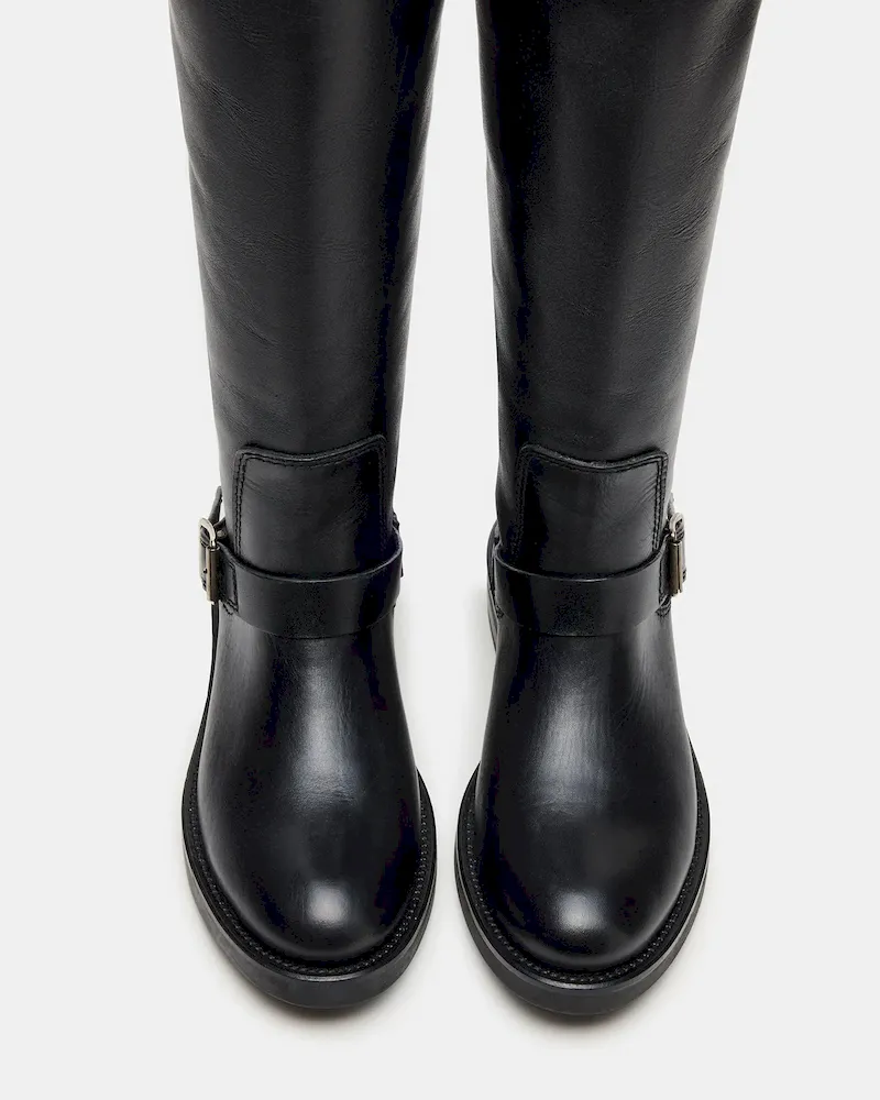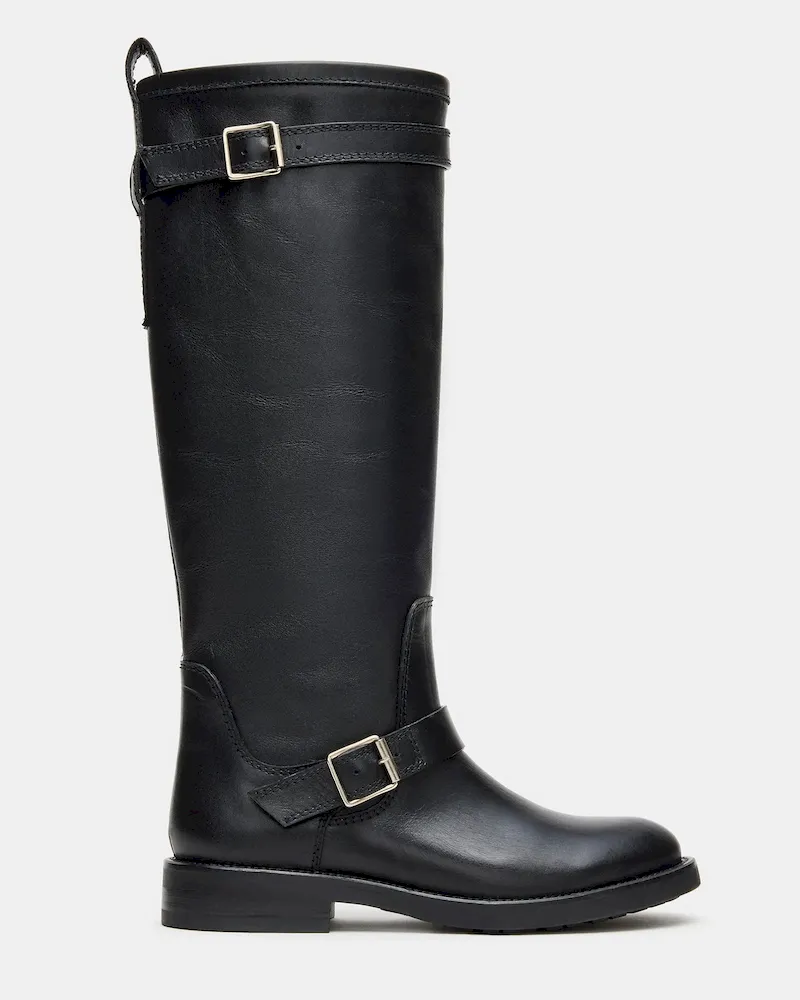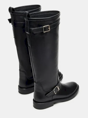The SADY knee-high boot combines sleek design with functional details. Featuring a rounded toe for comfort and adjustable buckles that add both style and a secure fit, this boot is crafted to elevate your wardrobe with a refined edge. Ideal for those seeking a versatile yet distinctive footwear option.