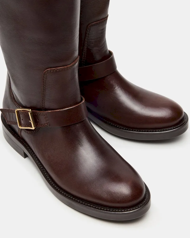 The SADY knee-high boot combines sleek design with functional details. Featuring a rounded toe for comfort and adjustable buckles that add both style and a secure fit, this boot is crafted to elevate your wardrobe with a refined edge. Ideal for those seeking a versatile yet distinctive footwear option.