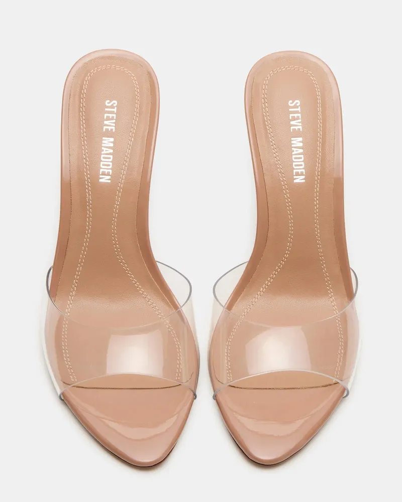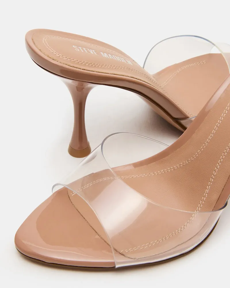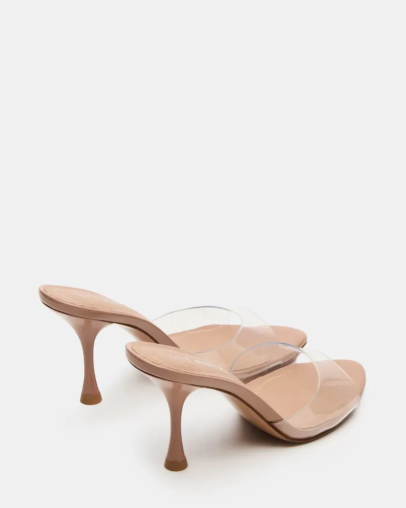 The SANTI CLEAR combines modern sophistication with timeless elegance in a pointed-toe mule heel design. Its sleek silhouette elongates the leg, while the unique upper adds a contemporary, barely-there look ideal for versatile styling. Crafted for both comfort and confident wear, this heel seamlessly transitions from day to evening, offering an expert-level choice for refined wardrobes.