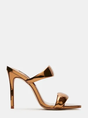 The SATURN features a sleek mule heel and a tubular double strap, with a stiletto heel. A perfect combination of style and comfort for any occasion. Expertly crafted for a sophisticated look, these heels will elevate any outfit.