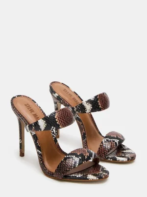 The SATURN features a sleek mule heel and a tubular double strap, with a stiletto heel. A perfect combination of style and comfort for any occasion. Expertly crafted for a sophisticated look, these heels will elevate any outfit.