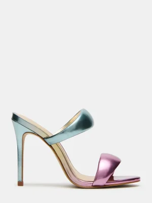 The SATURN features a sleek mule heel and a tubular double strap, with a stiletto heel. A perfect combination of style and comfort for any occasion. Expertly crafted for a sophisticated look, these heels will elevate any outfit.