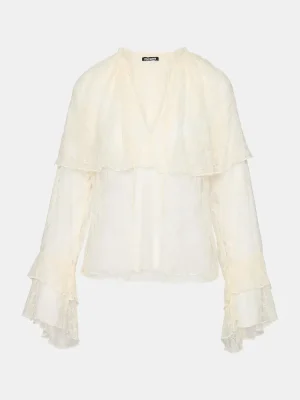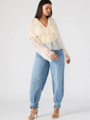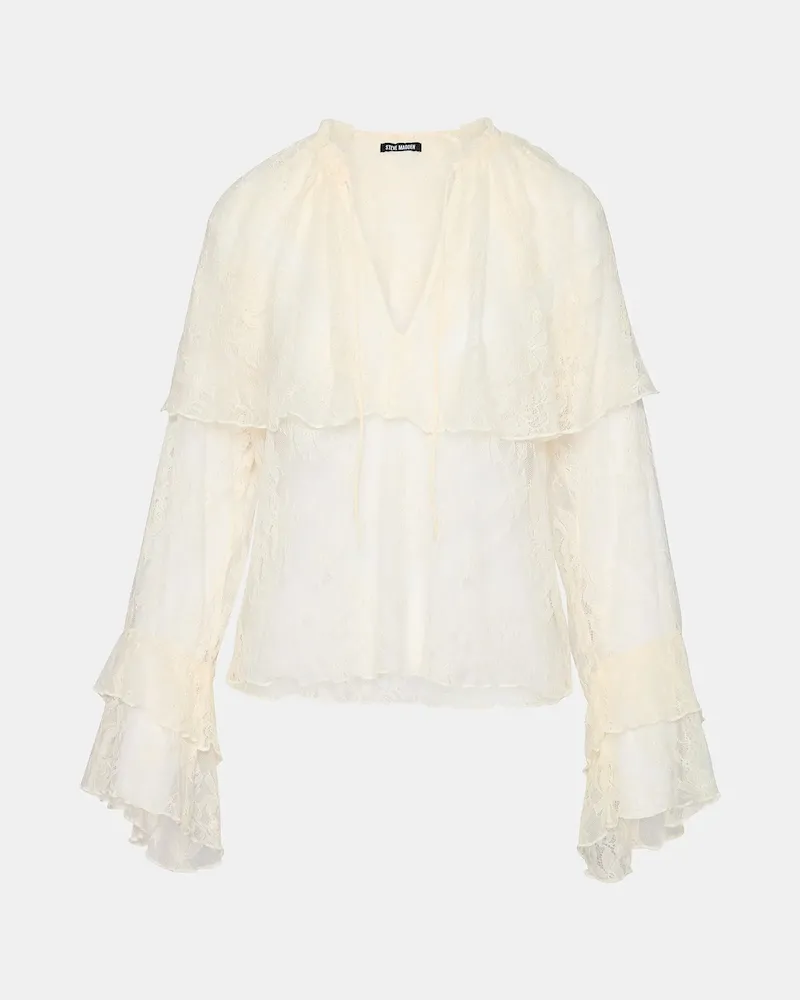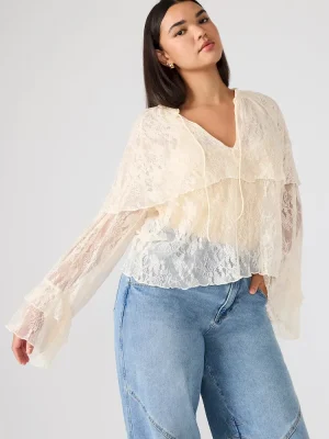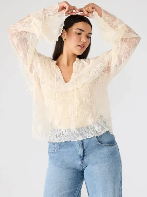 The SAYLOR top features a refined lace design with long sleeves, offering a blend of elegance and sophistication. Crafted to provide a delicate texture and subtle transparency, this top is ideal for layering or wearing on its own for a polished, expert look. Its timeless style and detailed construction make it a versatile addition to any wardrobe, perfect for both professional settings and stylish evening occasions.