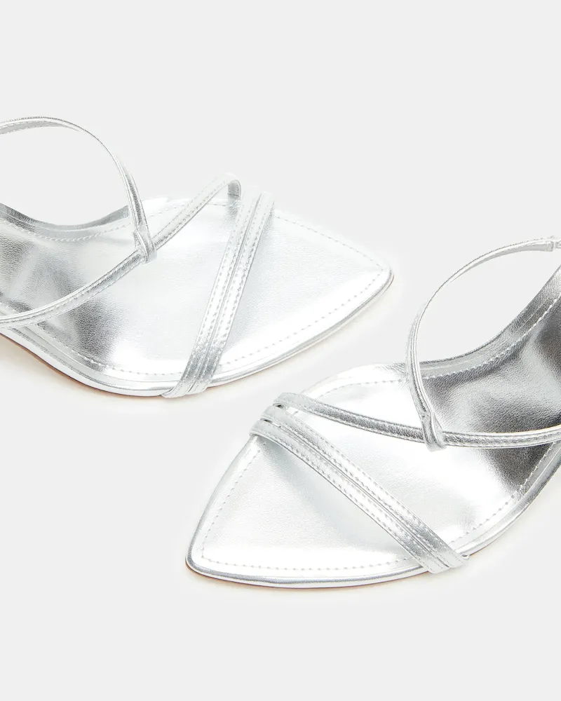 Experience ultimate sophistication with our SENSES strappy pointed toe mule sandals. Crafted with sleek delicate straps, these shoes elevate any outfit. The pointed toe offers a modern touch while the mule design adds comfort. Indulge in luxury without compromising style.
