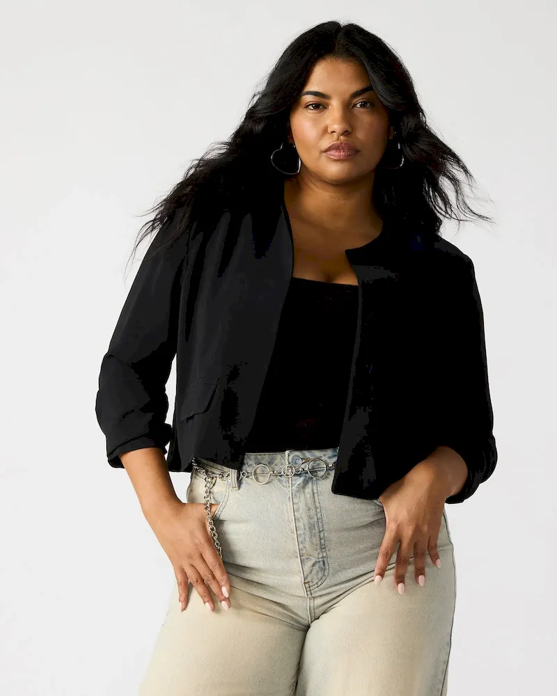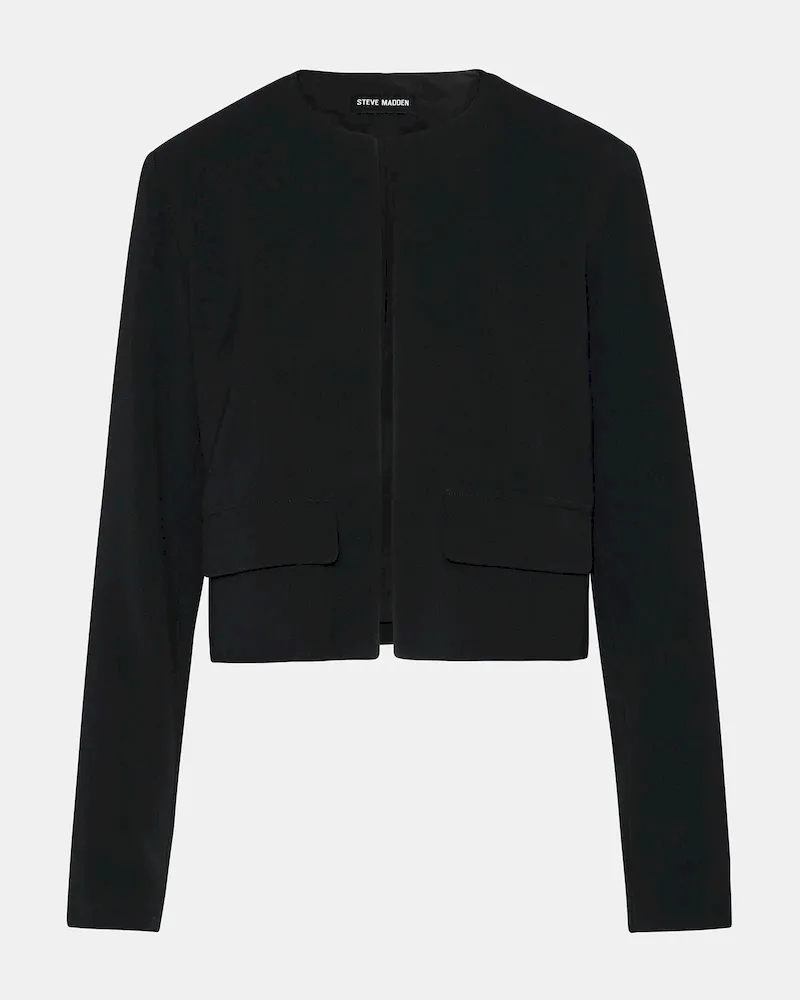 Crafted with long sleeves and an open-front design, the SERENEA blazer provides a polished and sophisticated look. Perfect for any occasion, this blazer adds effortless style to any outfit. Elevate your wardrobe with this timeless and versatile piece.